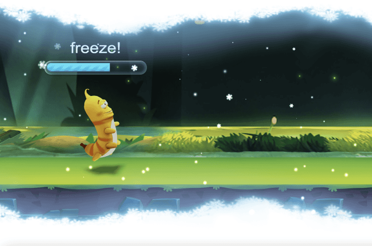 This is a charming side-scrolling runner game where players control a cute yellow striped caterpillar running through a magical forest. The art style is cartoonish and vibrant, with a dark woodland backdrop illuminated by glowing fireflies and soft light beams, creating a dreamy and mysterious atmosphere. The caterpillar has expressive eyes and smooth animations, holding a small bouquet of flowers, adding to its playful charm. Players tap and hold the screen to speed up, releasing to slow down—timing and rhythm are key to avoid obstacles or pitfalls. The gameplay is simple yet engaging, focusing on pace control and reflexes. As the run progresses, speed increases, raising the challenge. With its whimsical visuals and gentle soundtrack, the game offers a relaxing yet addictive experience. Perfect for casual play, it appeals especially to fans of cute characters and nature-themed adventures.