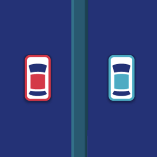 This is a minimalist racing game featuring two cars, viewed from above on a sleek blue road with clean lane markings. Players control two stylized vehicles—one red, one blue—swiping left or right to navigate through traffic and avoid collisions. The game’s title, "Two Cars," highlights its dual-vehicle core mechanic, possibly involving coordination or competition. A central "PLAY" button invites players to start the action. The cars are flat-designed and cartoonish, adding charm to the simple yet engaging visuals. Gameplay is fast-paced, testing reflexes and timing as lanes fill with obstacles and other vehicles. As levels progress, traffic density increases, raising the challenge. With no complex controls or distractions, it’s perfect for quick sessions or casual play. The design emphasizes clarity and fun, offering a satisfying arcade experience. Whether you're racing solo or competing against another player, this game delivers smooth, addictive action in a compact package.
